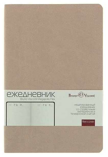 BrunoVisconti Ежедневник недатированный А5, 136 листов Megapolis Flex, обложка искусственная кожа, блок 70 г/м2, бежевый интересное: