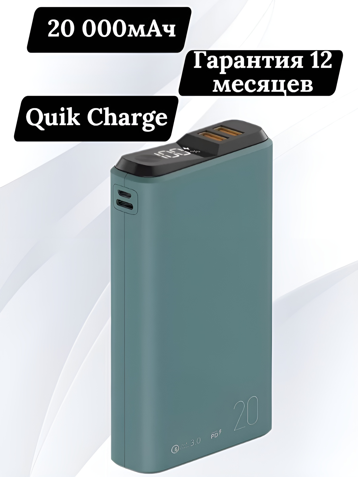 Внешний аккумулятор Power bank QS-20 20000mAh, темно-зеленый