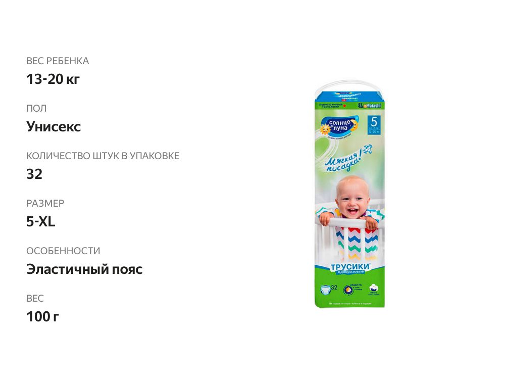 подгузники-трусики Солнце и Луна Мягкая забота 5/XL (13-20 кг), 32 шт.