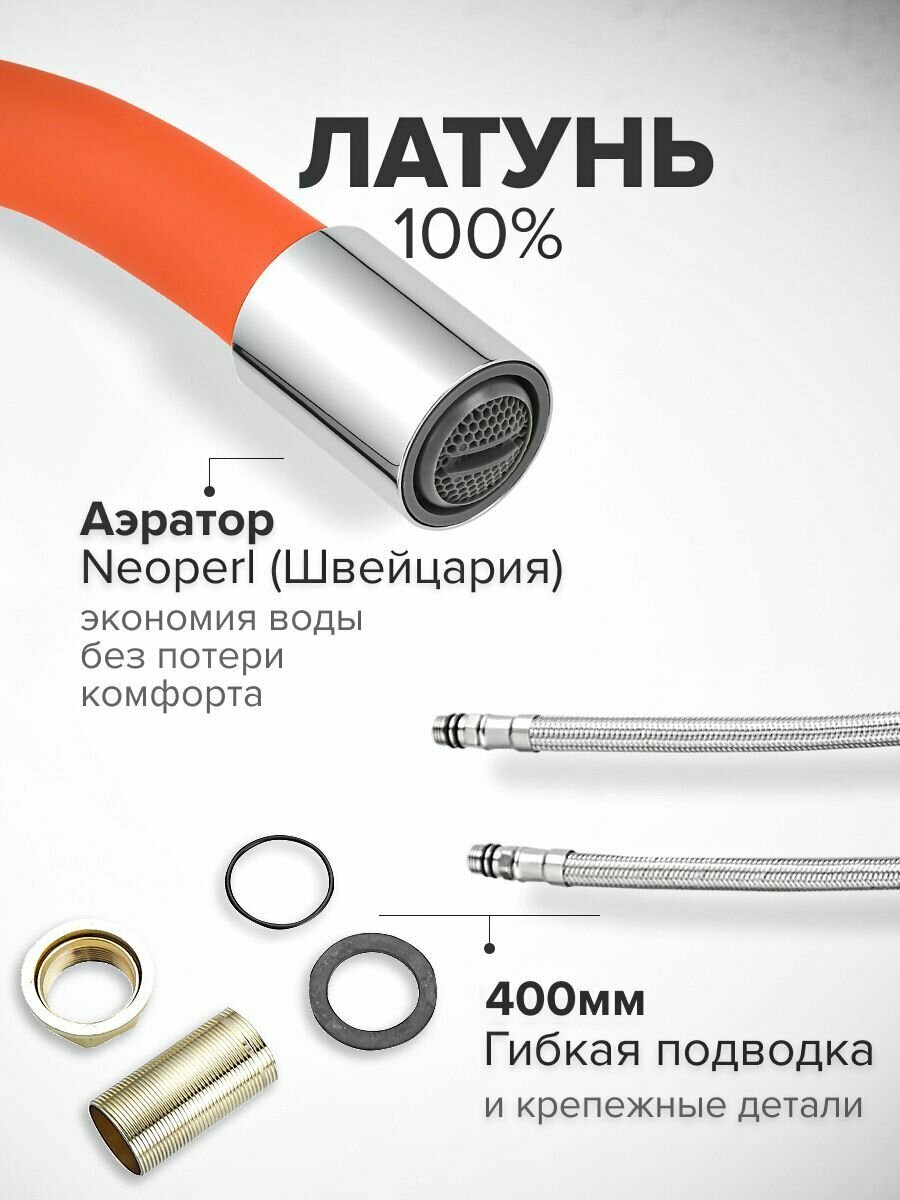 Однорычажный смеситель для кухни с гибким изливом SHEVANIK S443-4 оранжевый интересное: