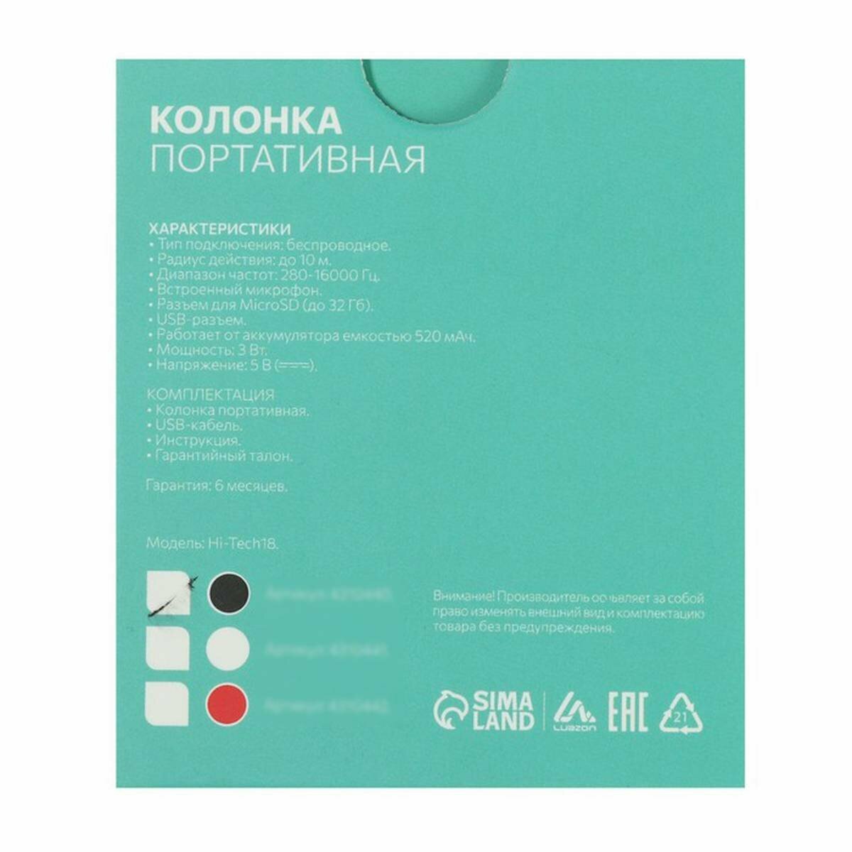 Портативная колонка Luazon Home Hi-Tech18, 3 Вт, 520 мАч, microSD, USB, черная интересное: