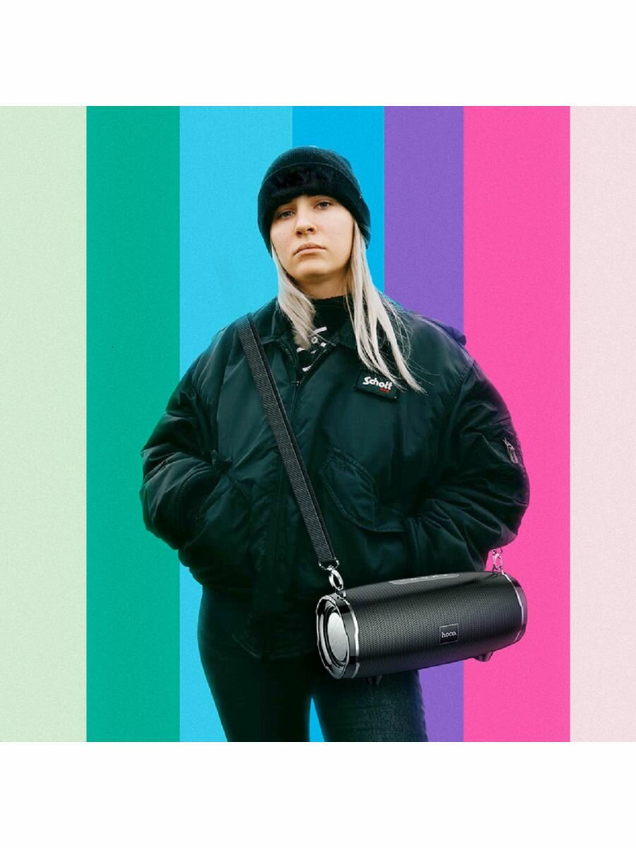 Портативная колонка Hoco HC5 Cool Enjoy, стерео, 30Вт, черная, с ремешком, FM-радио