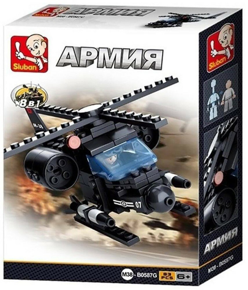 Конструктор SLUBAN 93 дет. Армия. Вертолет (8в1, +фигурка, в коробке, от 6 лет) M38-B0587G, (Рыжий к