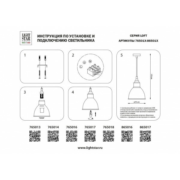 Светильник подвесной Lightstar Loft 765016, E14, 40Вт, кол-во ламп:1шт., Белый