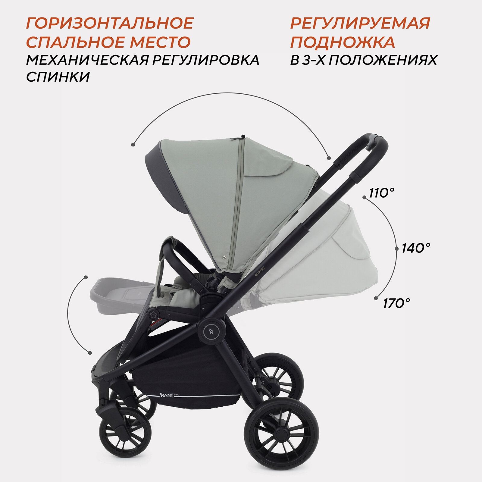 Коляска детская прогулочная Rant Basic Energy арт. RA096, Graphite