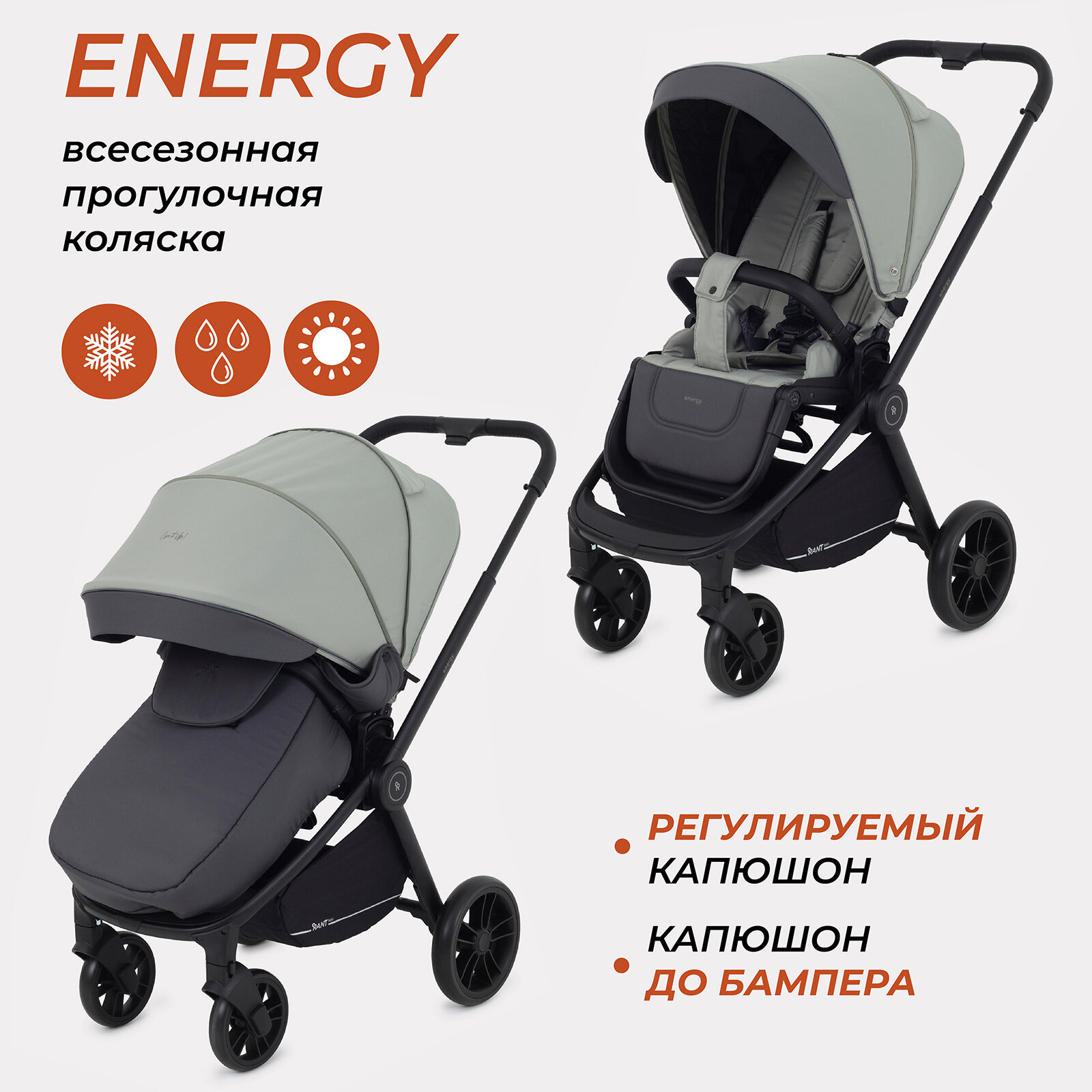 Коляска прогулочная всесезонная Rant Basic Energy арт. RA096, Grey 2024