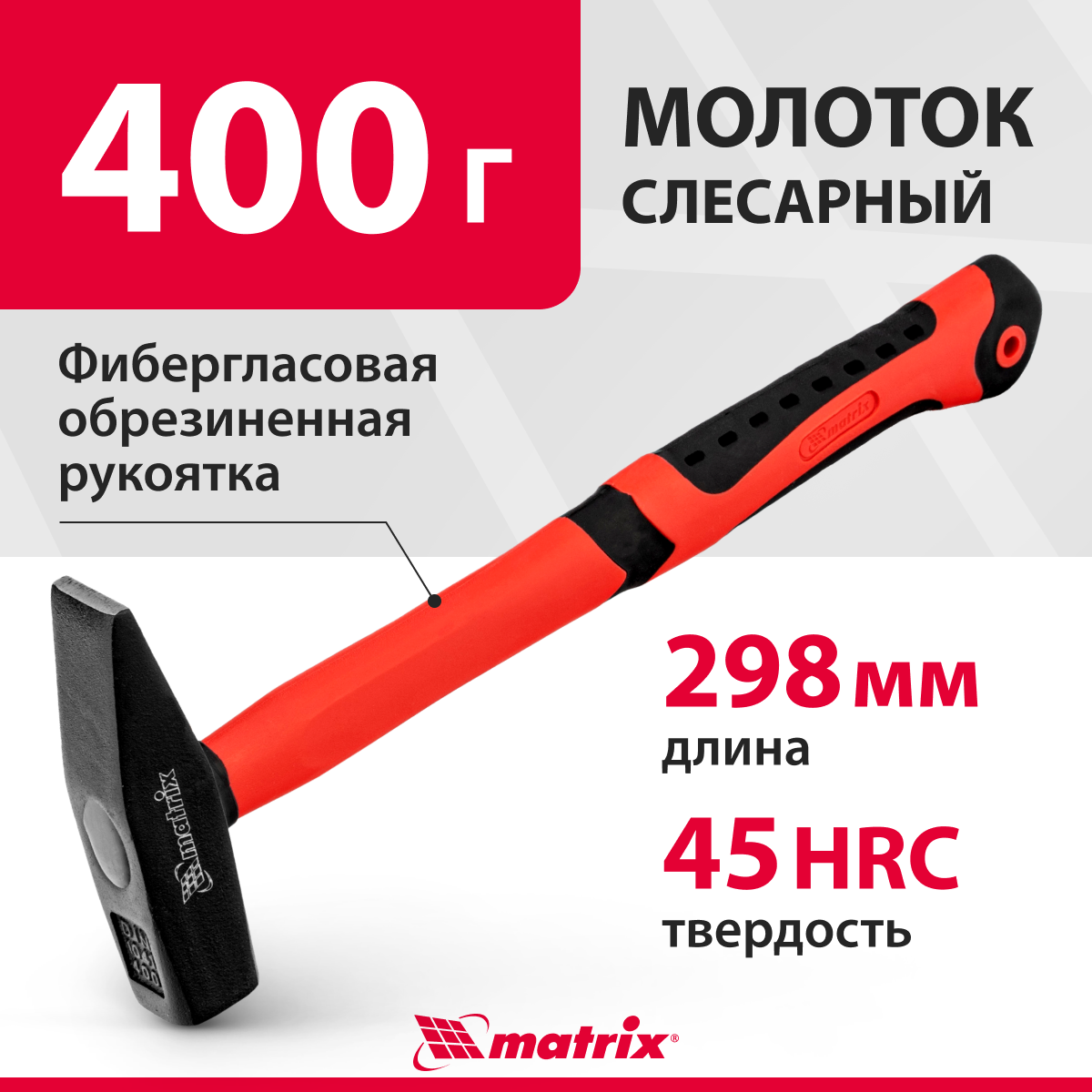 Молоток слесарный, 400 г, фибергласовая обрезиненная рукоятка Matrix