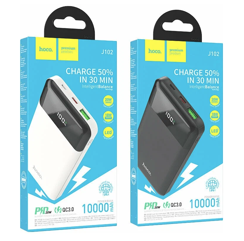 Внешний АКБ HOCO J102 Cool Figure 10000 mAh, 1xUSB, 1xUSB-C, 3А, QC 3.0, PD20W, LED, Li-Pol (черный)