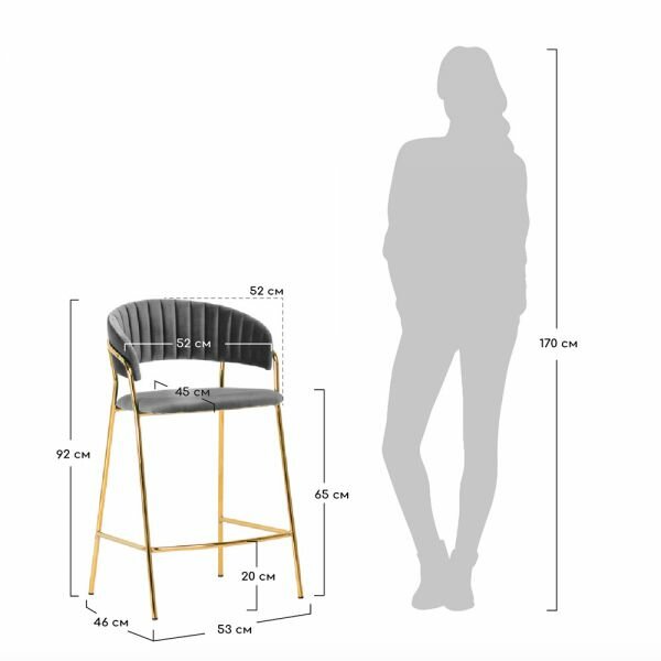 Полубарный стул TURIN Велюр Серый/Золото