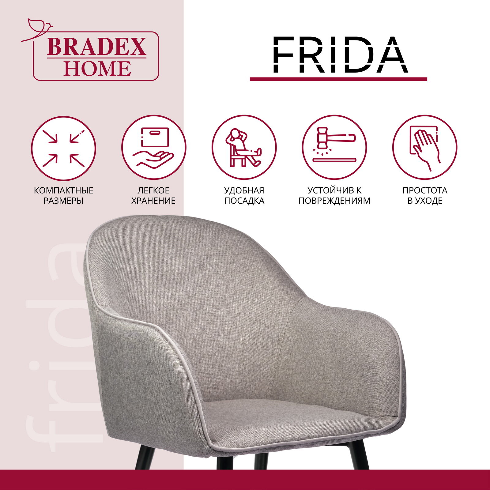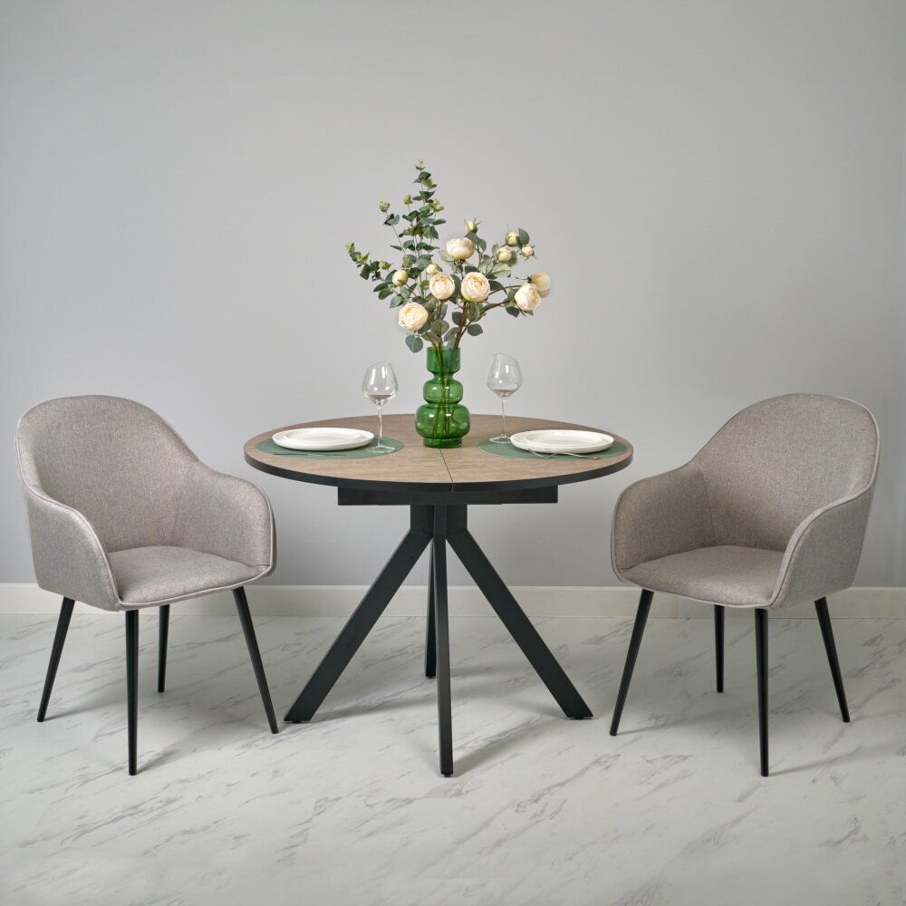 Стул кресло для кухни мягкий обеденный со спинкой и с подлокотниками рогожка Frida серо-коричневый