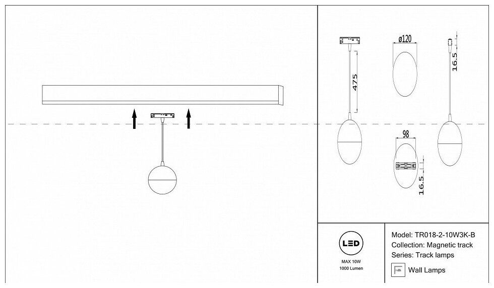 | Подробная комплектация | Споты и трек-системы Maytoni TR018-2-10W3K-B |