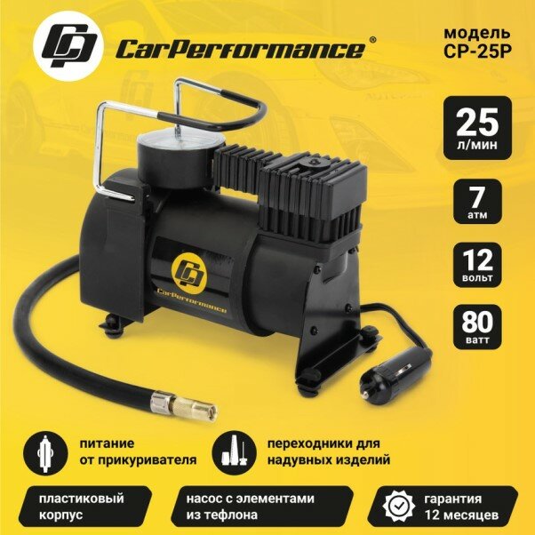CAR PERFORMANCE CP25P Компрессор (25 л/мин) 7 Атм "CAR PERFORMANCE" (шланг 0,6 м, 3 переходника, 12V/9A, 80W)