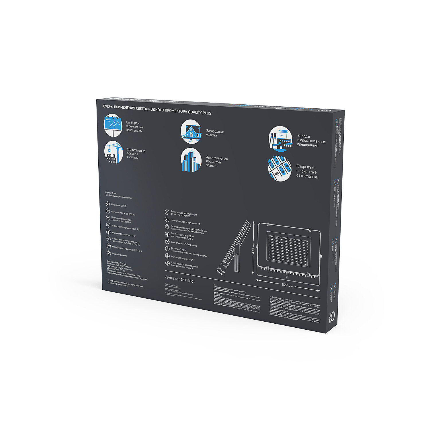 Прожектор уличный Gauss Qplus 613511300 светодиодный 300Втчерный интересное: