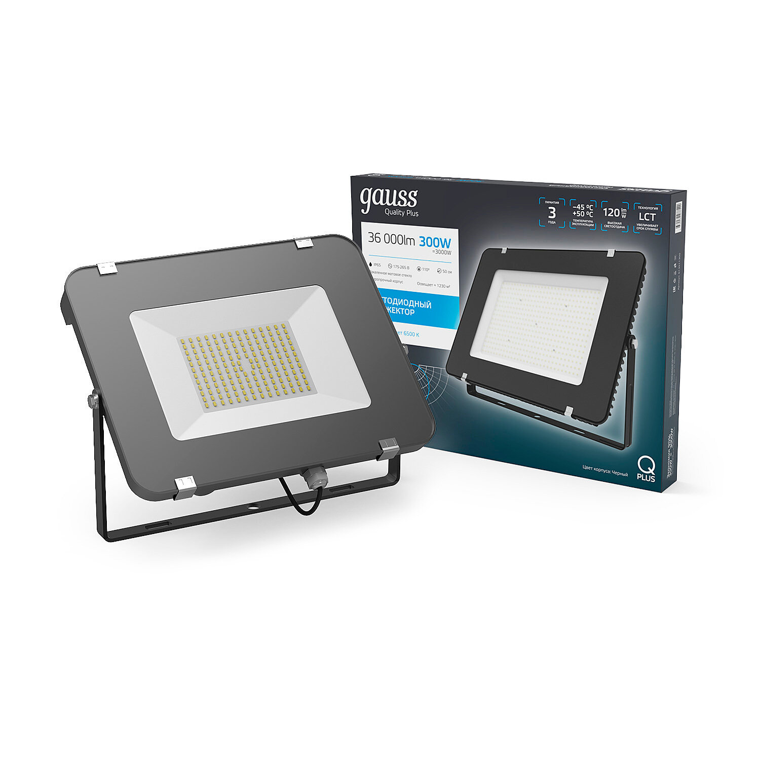 Прожектор GAUSS Qplus 300w 36000lm 6500k 175-265v ip65 черный led