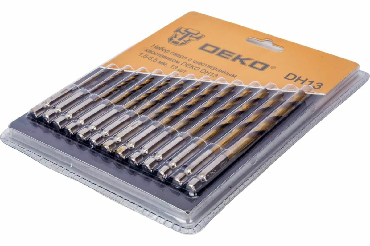 Набор сверл DH13 (13 шт; 1.5-6.5 мм; шестигранный хвостовик) DEKO 065-0538