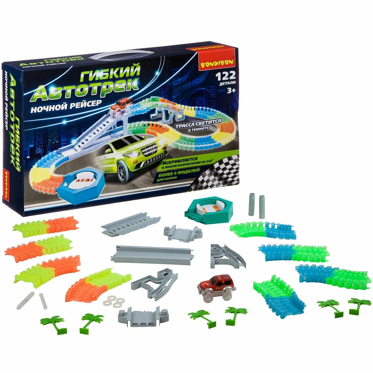 Купить Развивающие игры Bondibon Гибкий автотрек ночной рейсер, со светящейся трассой и машинкой, 122 дет.