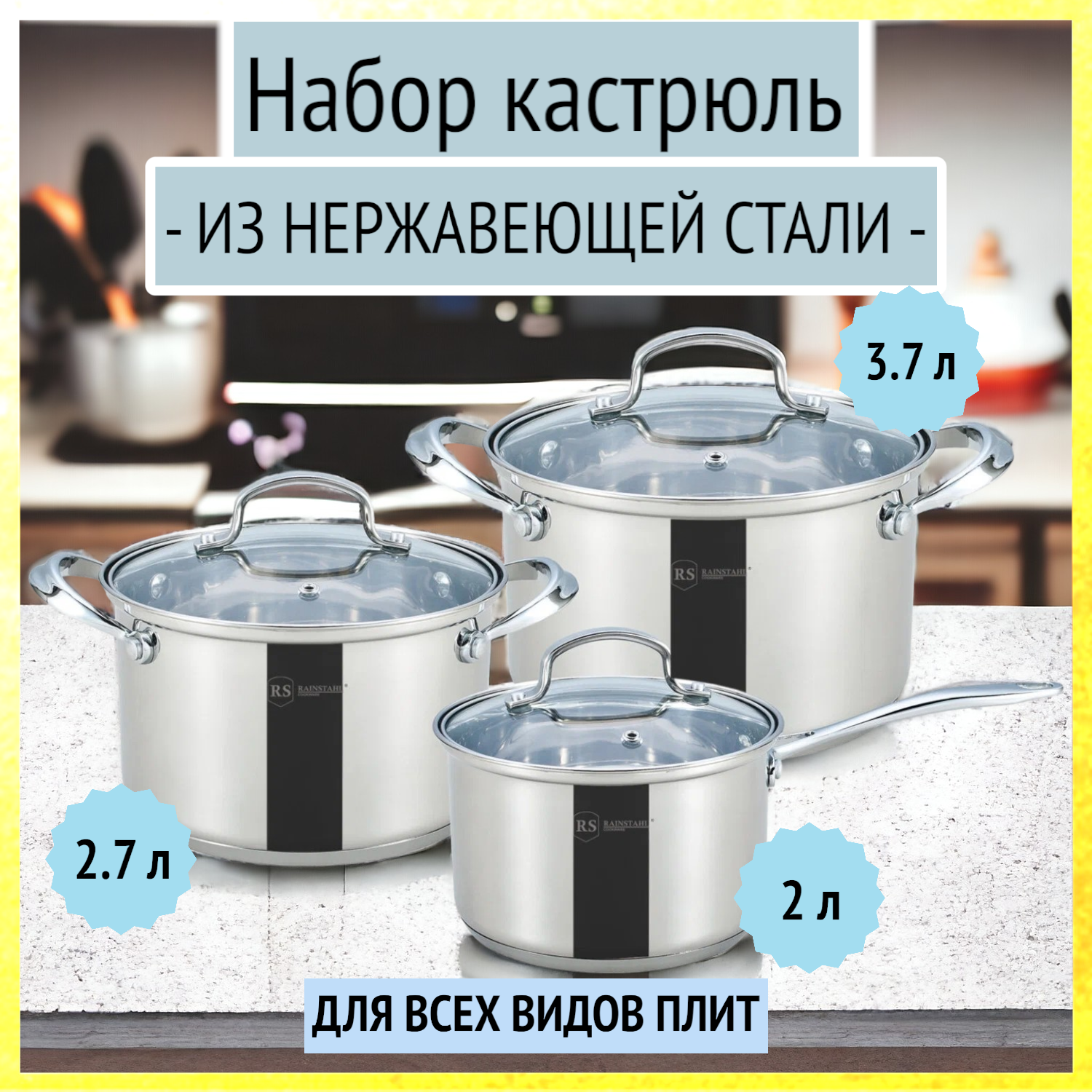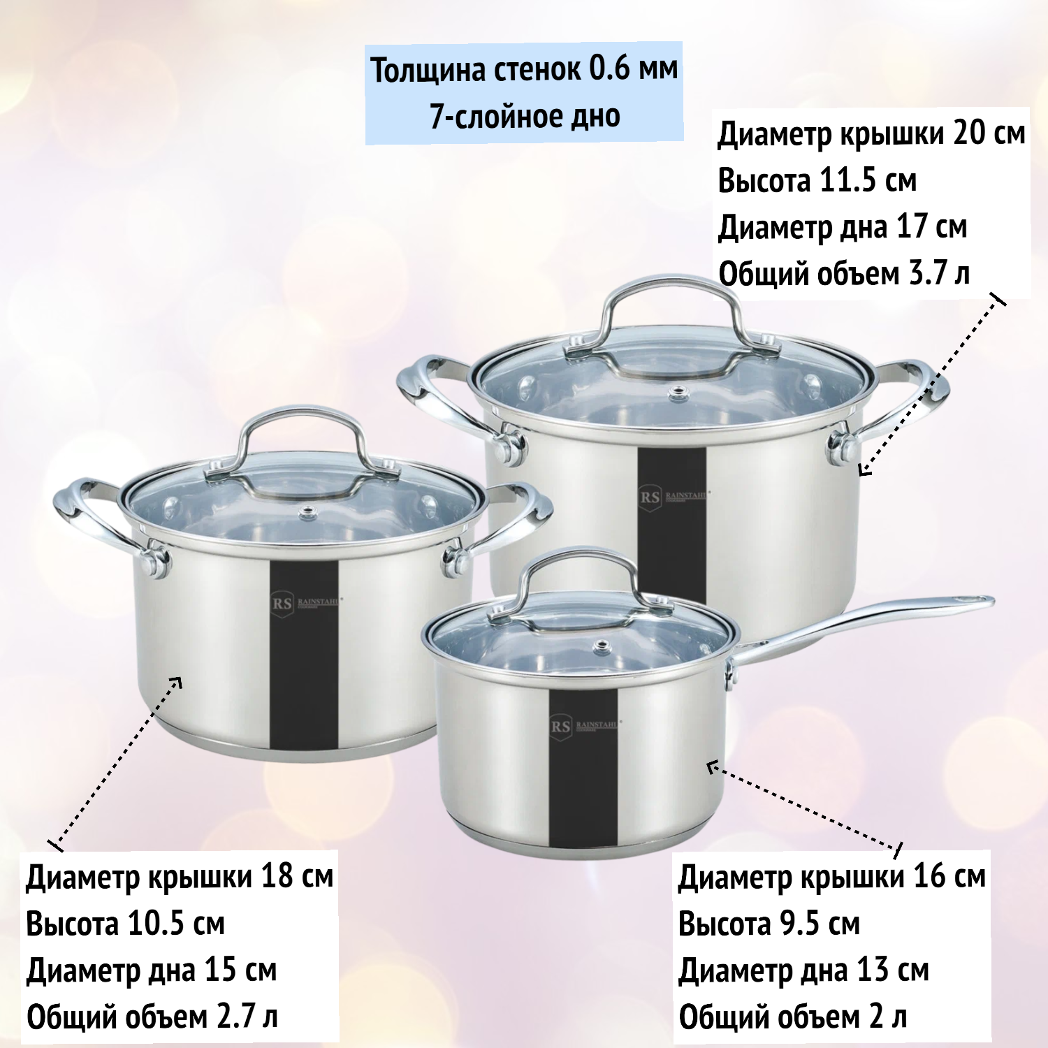 Набор посуды 6 предметов (2,0 л, 2,7 л, 3,7 л) из нержавейки Rainstahl, RS/CW 1616-06 интересное: