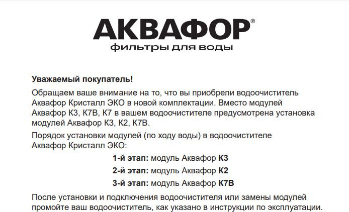 Комплект сменных картриджей Аквафор К3-К2-К7В для Кристалл ЭКО (новая комплектация) интересное: