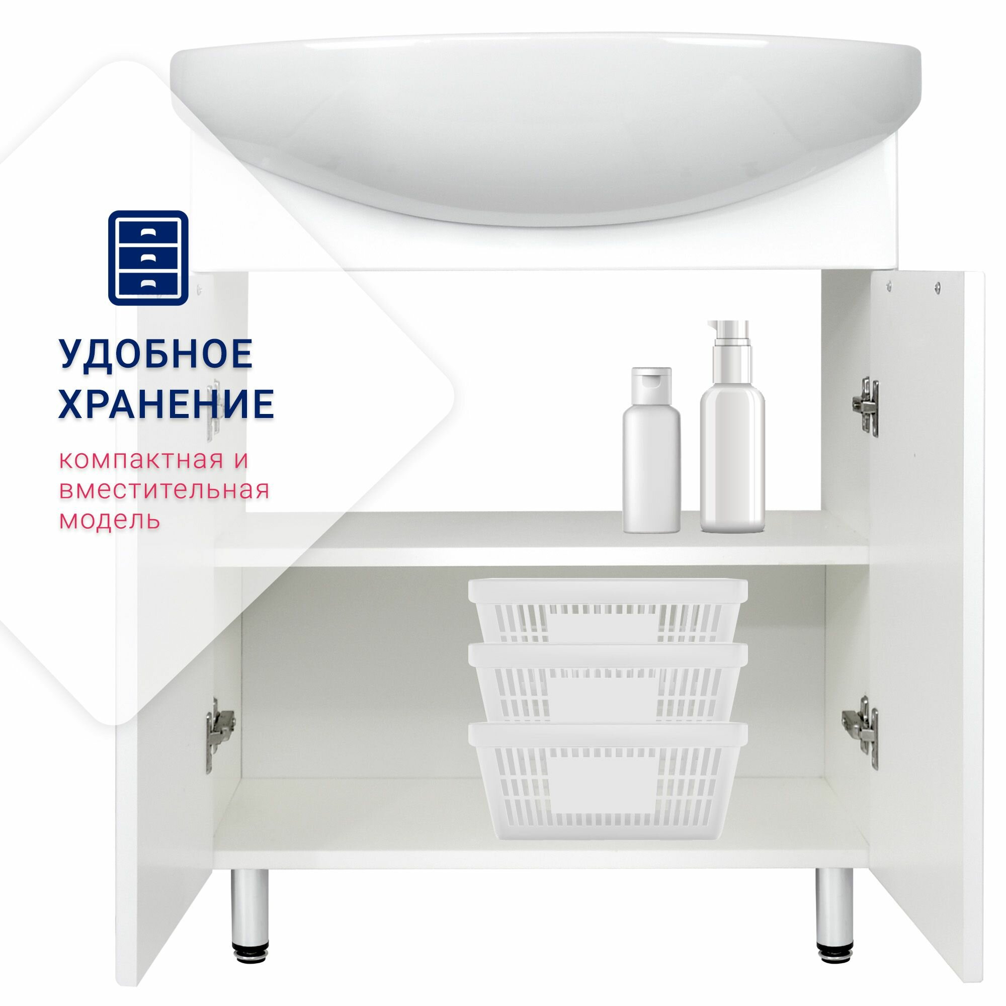 Тумба Афина 65 напольная, белая, под умывальник Стелла 65 DORATIZ 9912.491 интересное: