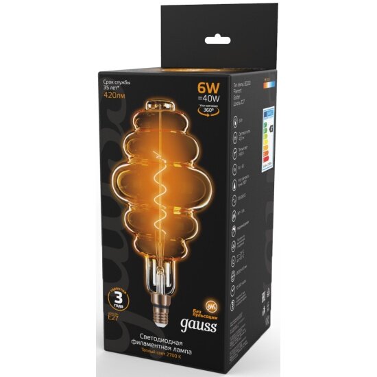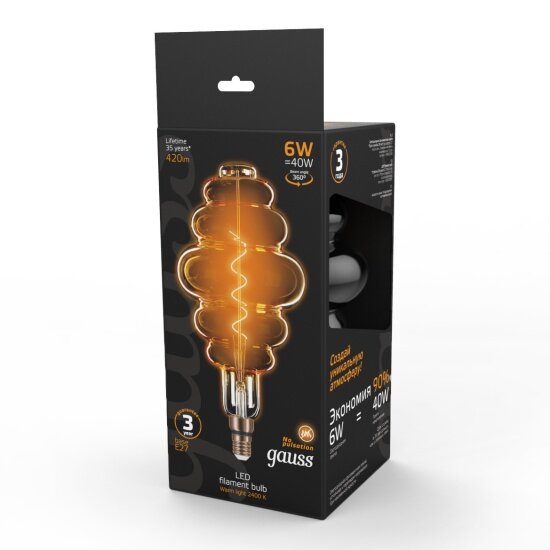 Gauss Лампа Gauss LED Vintage Filament Flexible BD200 6W E27 200*410mm Amber 2400K