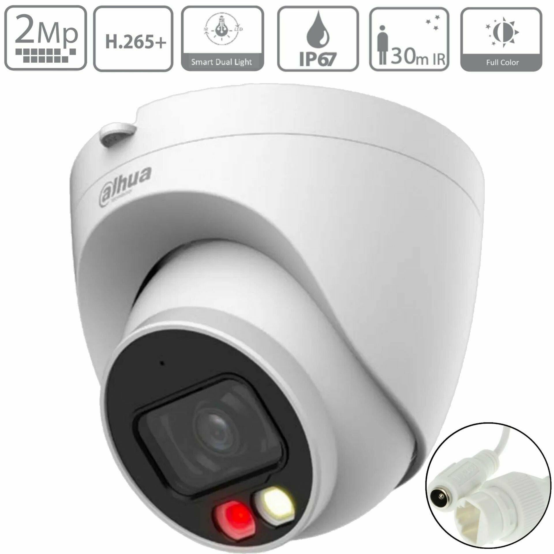 Видеокамера IP Dahua DH-IPC-HDW2249TP-S-IL-0280B 2MP 2.8mm, Full Color