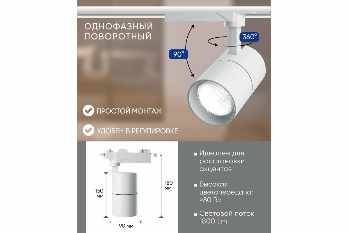 Светильник трековый светодиодный на шинопровод 30W, 2700 Lm, 6400К, 35 градусов, белый, AL103 со встроенным драйвером серия MarketBright