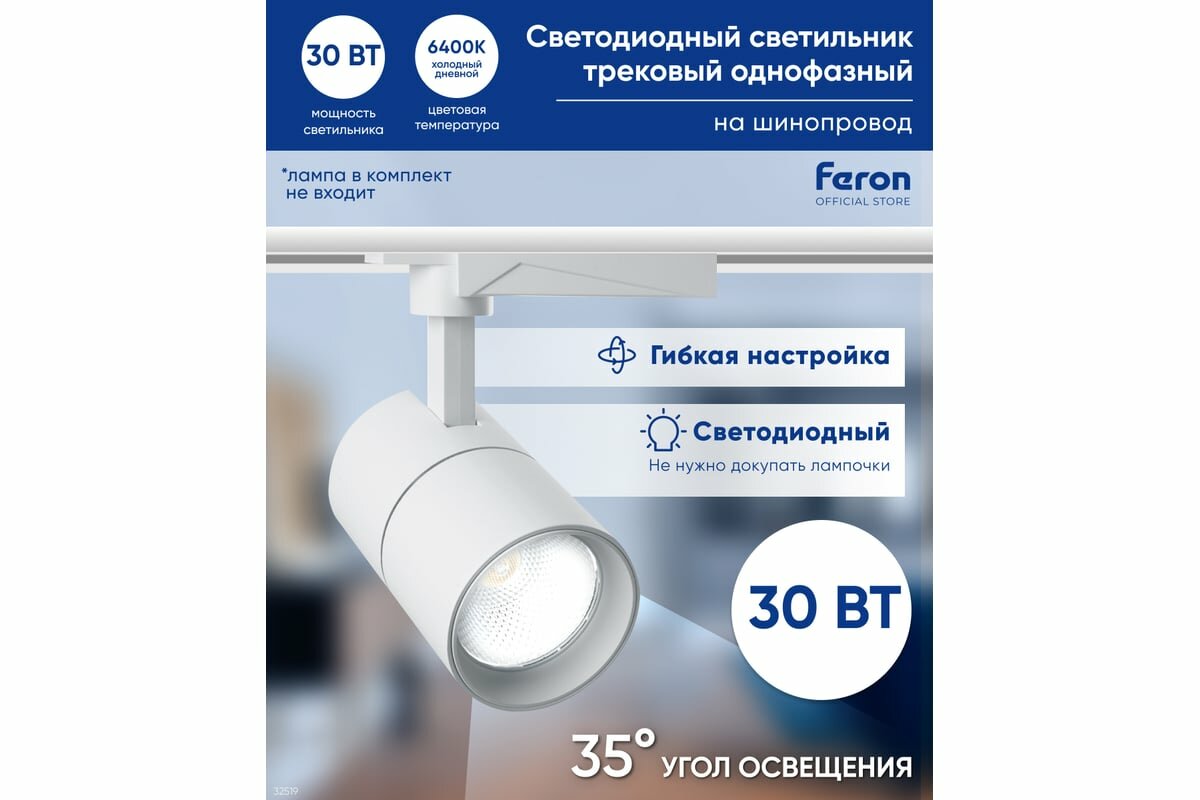 СохранитьFERON Светильник трековый светодиодный на однофазный шинопровод 30W, 6400К, белый, AL103 32519 интересное: