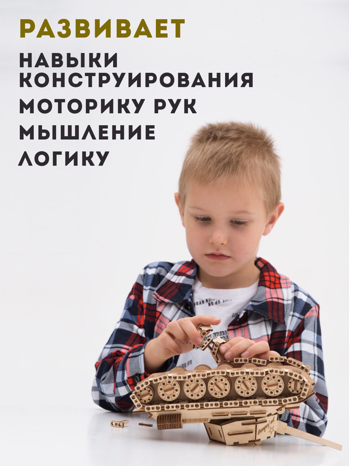 "Танк Грат" - сборная модель конструктора из дерева для детей от 3 до 14 лет