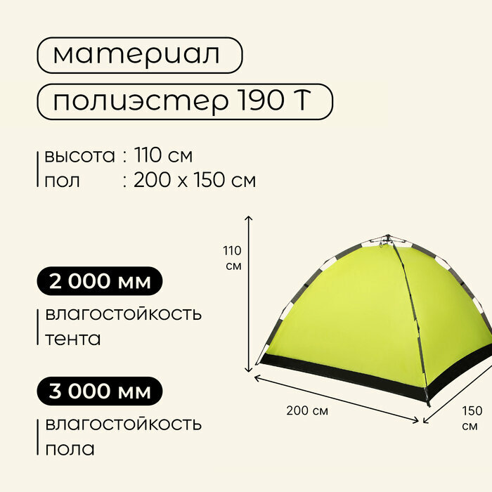 Палатка-автомат туристическая SWIFT 2, размер 200 х 150 х 110 см, 2-местная, однослойная