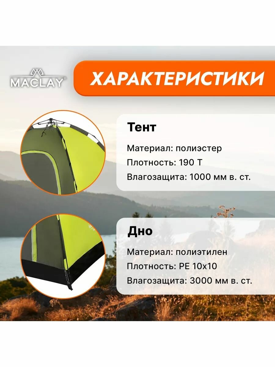 Купить Палатка-автомат туристическая Maclay Swift 2, 200х150х110 см, 2-местная, однослойная