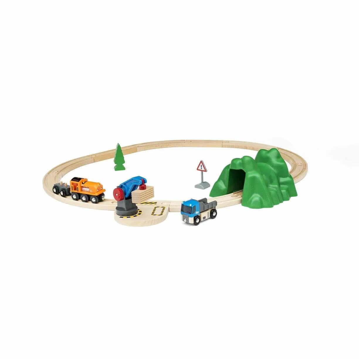 | Подробная комплектация | поезд с вагоном, туннель, погрузочный кран, автомобиль, дерево, дорожный знак |