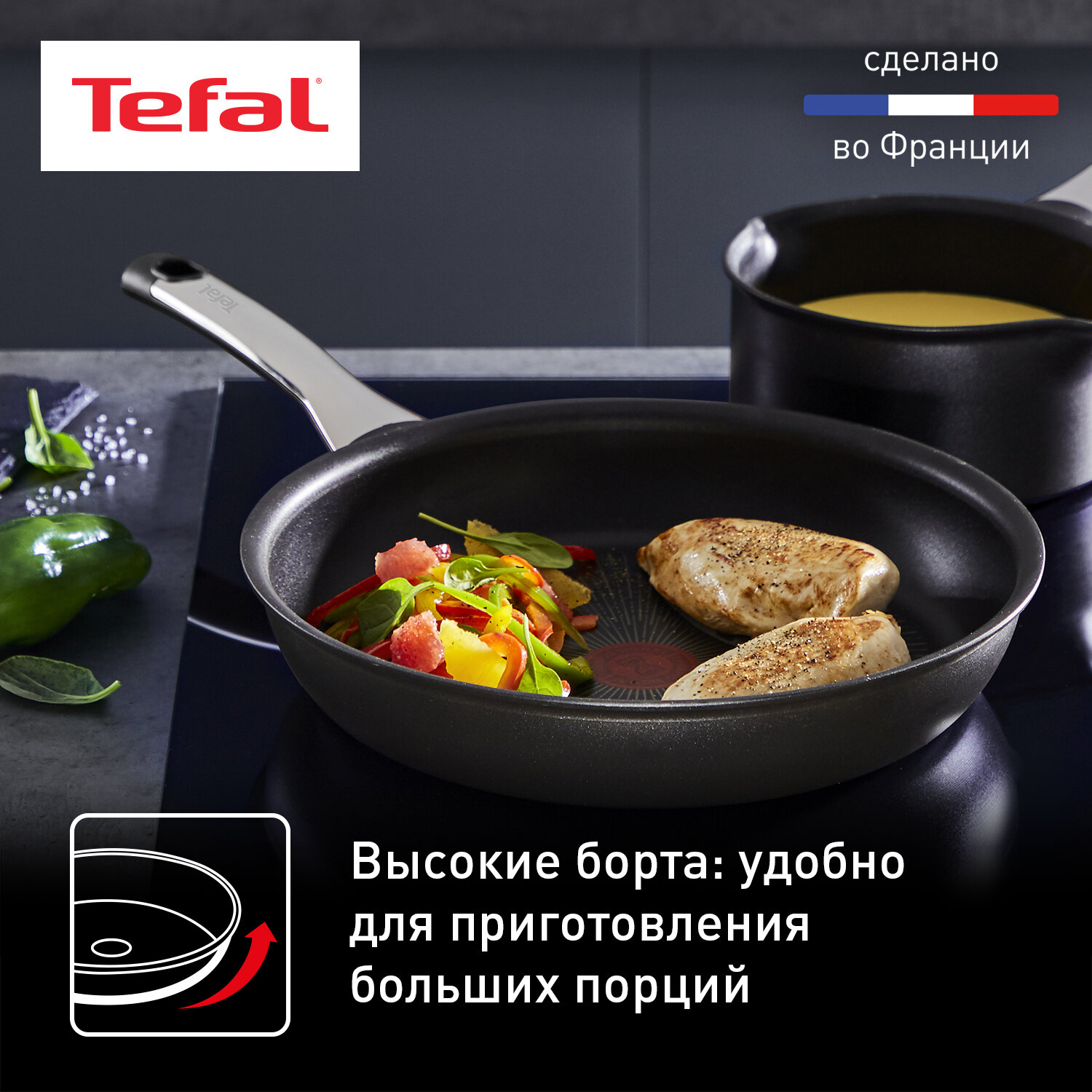 Сковорода Tefal Excellence G2690372, 22 см, глубокая с антипригарным покрытием, подходит для индукции, сделано во Франции