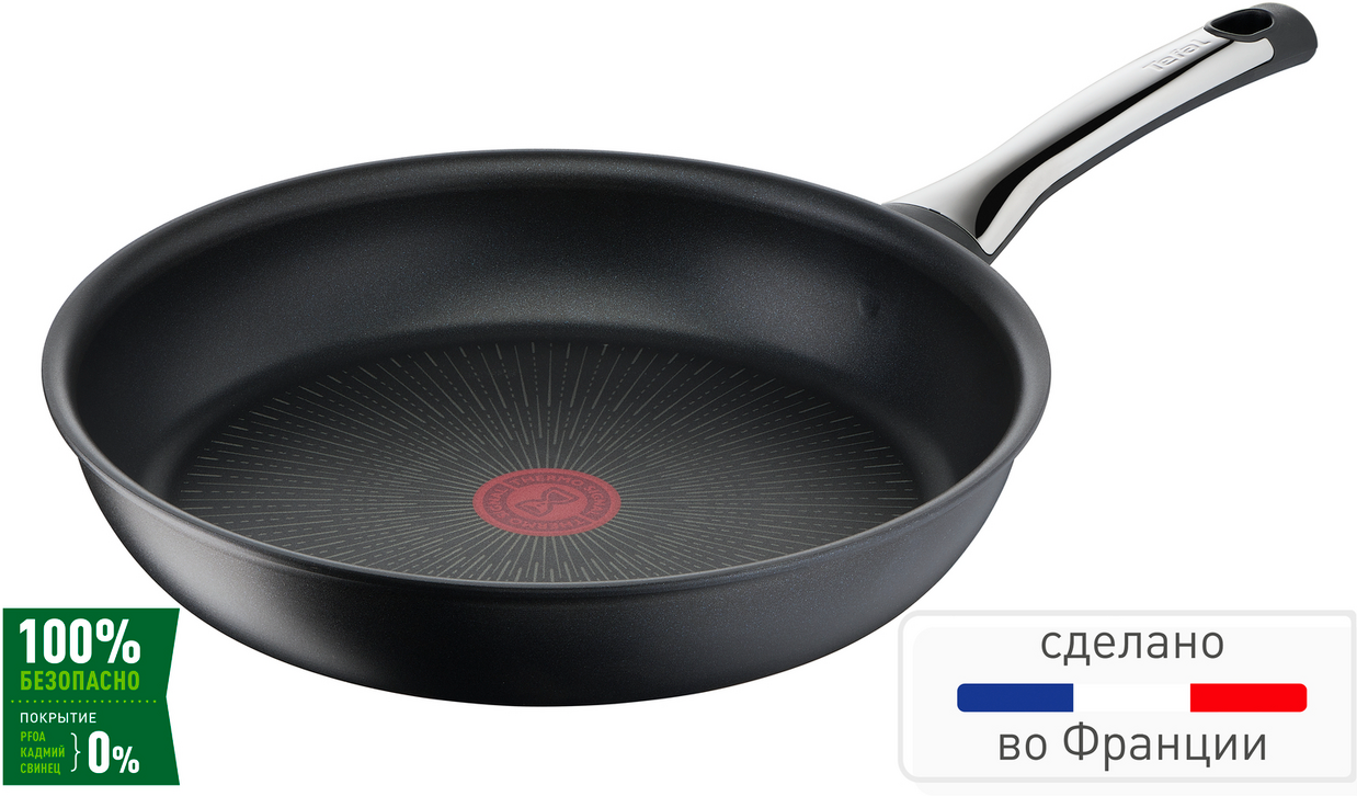 Сковорода Tefal Excellence G2690672, диаметр 28 см, с индикатором температуры, глубокая с антипригарным покрытием, для газовых, электрических и индукционных плит, сделано во Франции