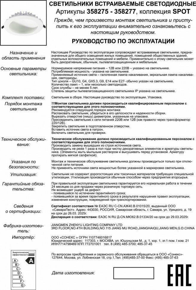| Комплектация | Встраиваемые светильники Novotech 358277 |