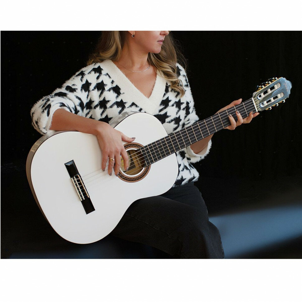 Valencia VC104WT Гитара классическая, деки и обечайка: липа, гриф: клен, накладка грифа и нижний порожек: махагон, цвет White