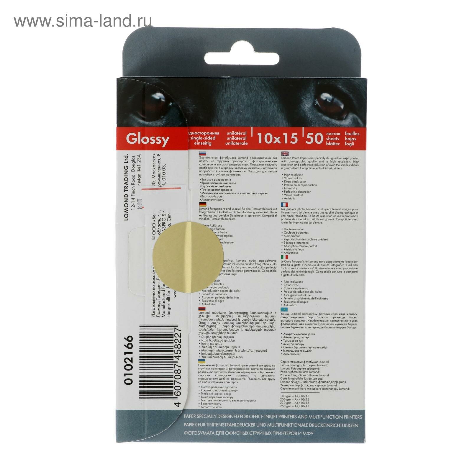 Купить Фотобумага глянцевая, 10×15 см, 230 г/м2, односторонняя, 50 листов, LOMOND, 0102035