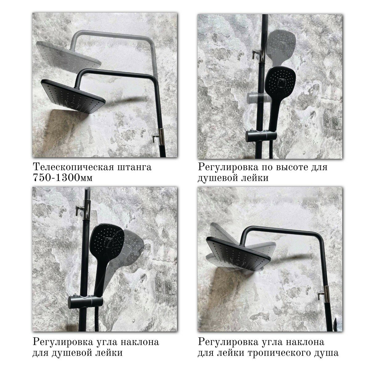 Душевая стойка c верхним тропическим душем и ручной лейкой,черная