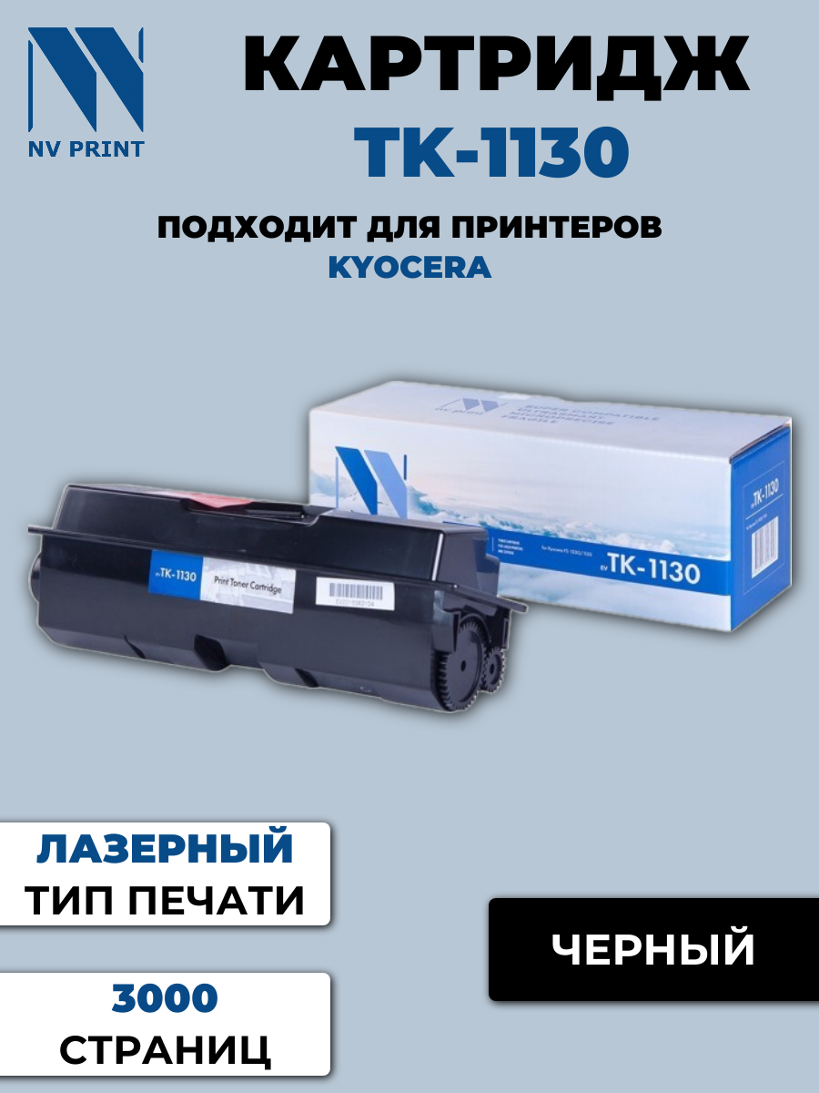 Тонер-картридж NV Print NV-TK1130 для Kyocera FS-1030MFP, DP, 1130MFP, ECOSYS M2030dn PN, M2030dn, M2530dn (совместимый, чёрный, 3000 стр.)