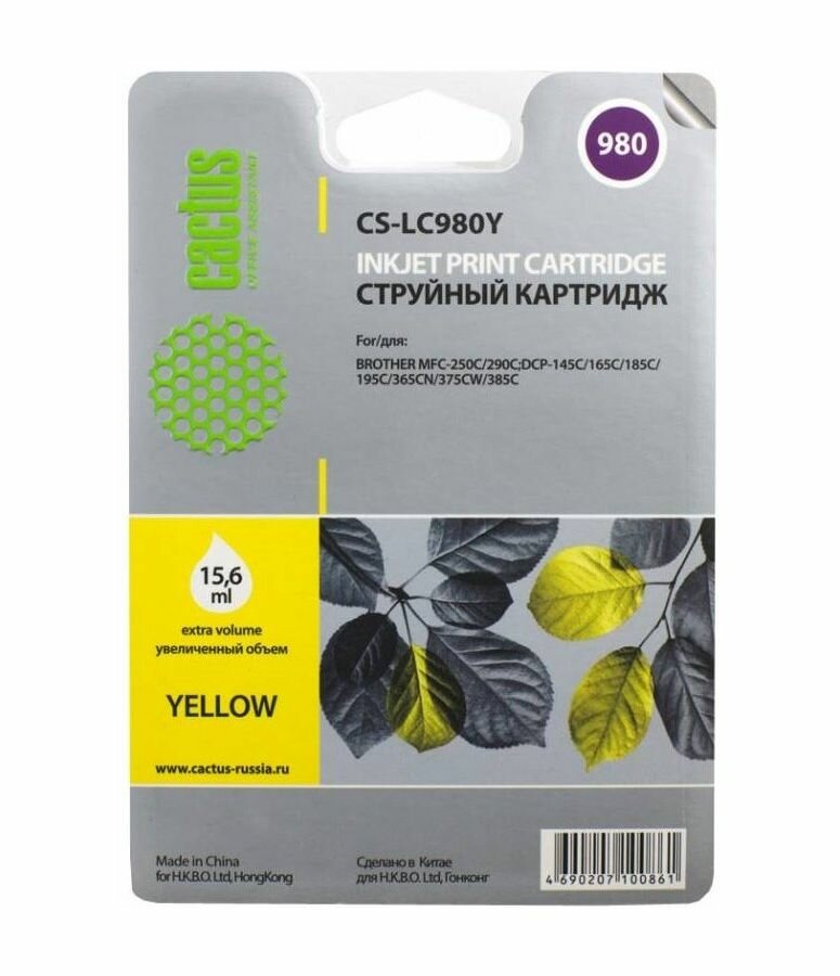 Картридж струйный Cactus CS-LC980Y желтый для Brother DCP-145C/165C MFC-250C/290C (16ml)