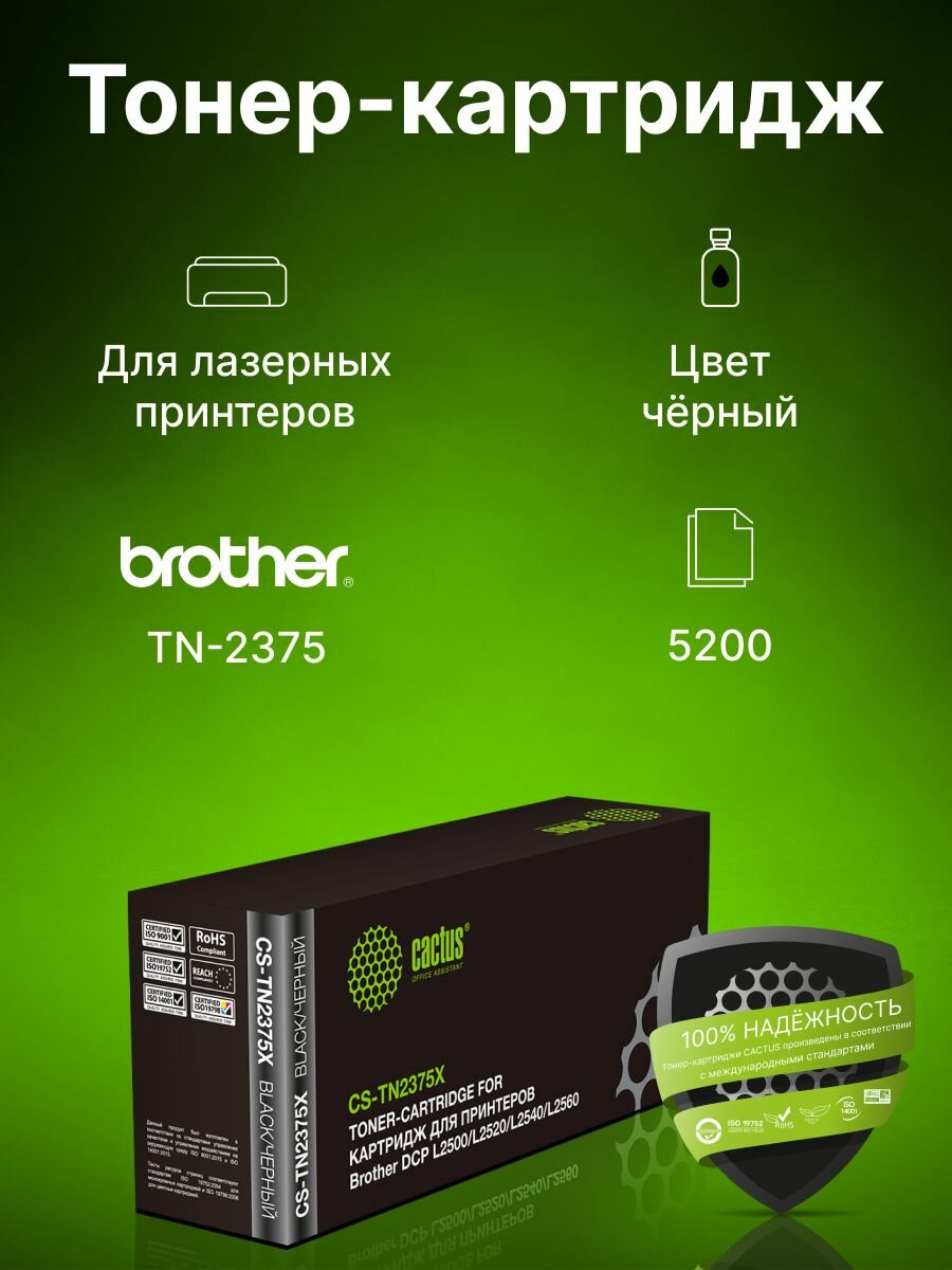 Картридж лазерный CACTUS (CS-TN2375X) для Brother DCP L2500/L2520/L2540/L2560, ресурс 5200 страниц (арт. 364139)