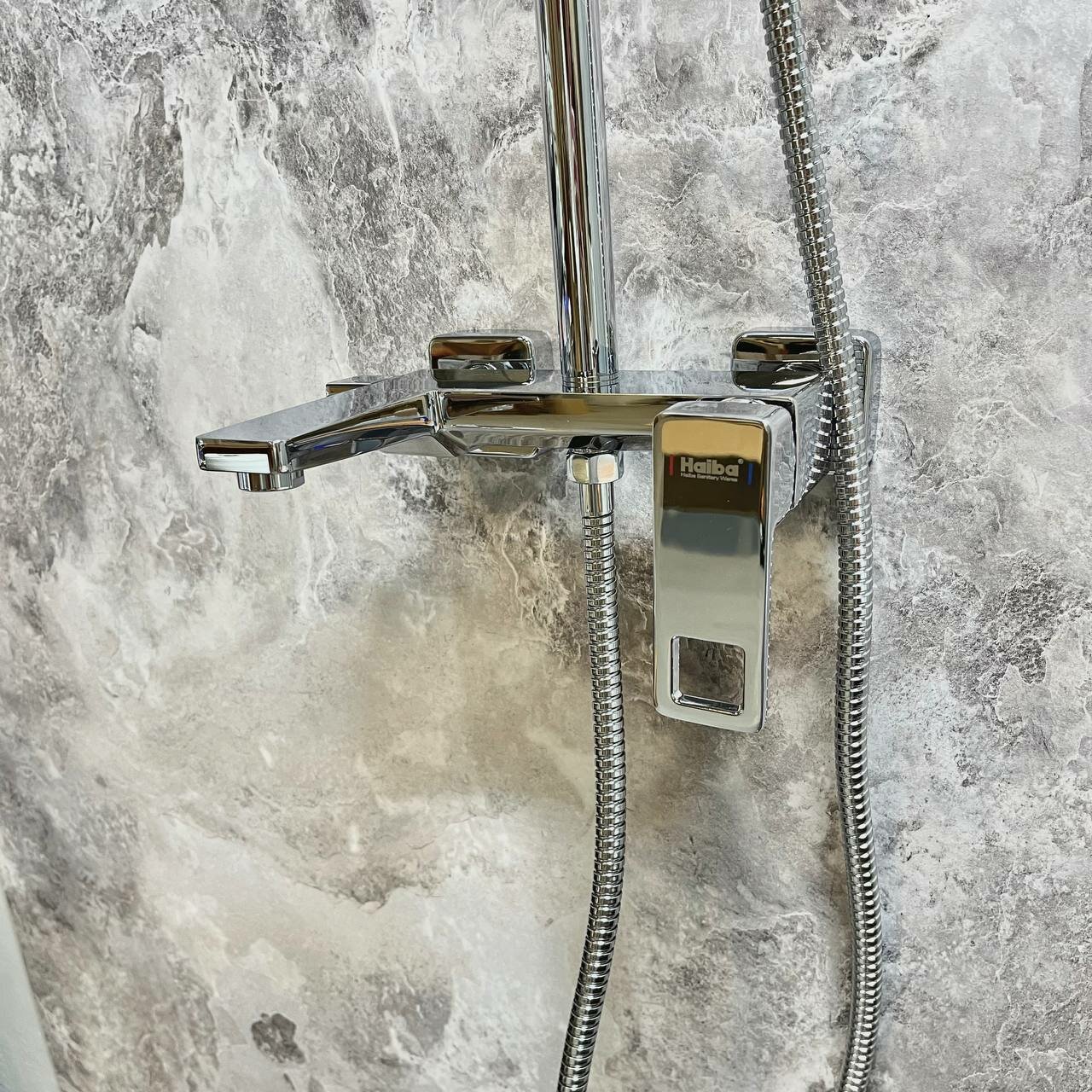 Душевой комплект со смесителем, верхним душем и ручной лейкой HAIBA HB24615, хром