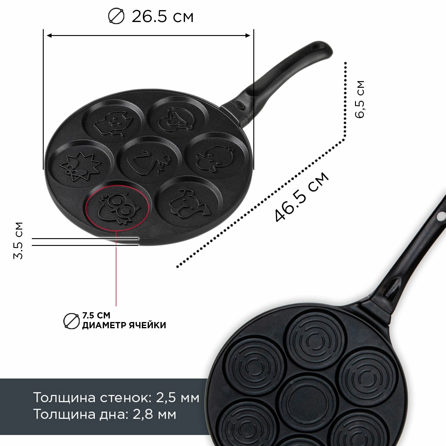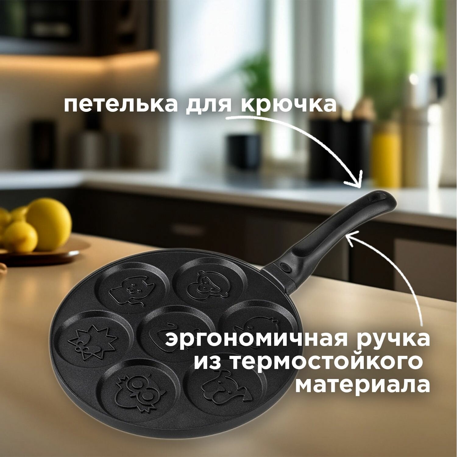 сковорода funny zoo с антипригар.покрытием диаметр 26.5 см на 7 порций
