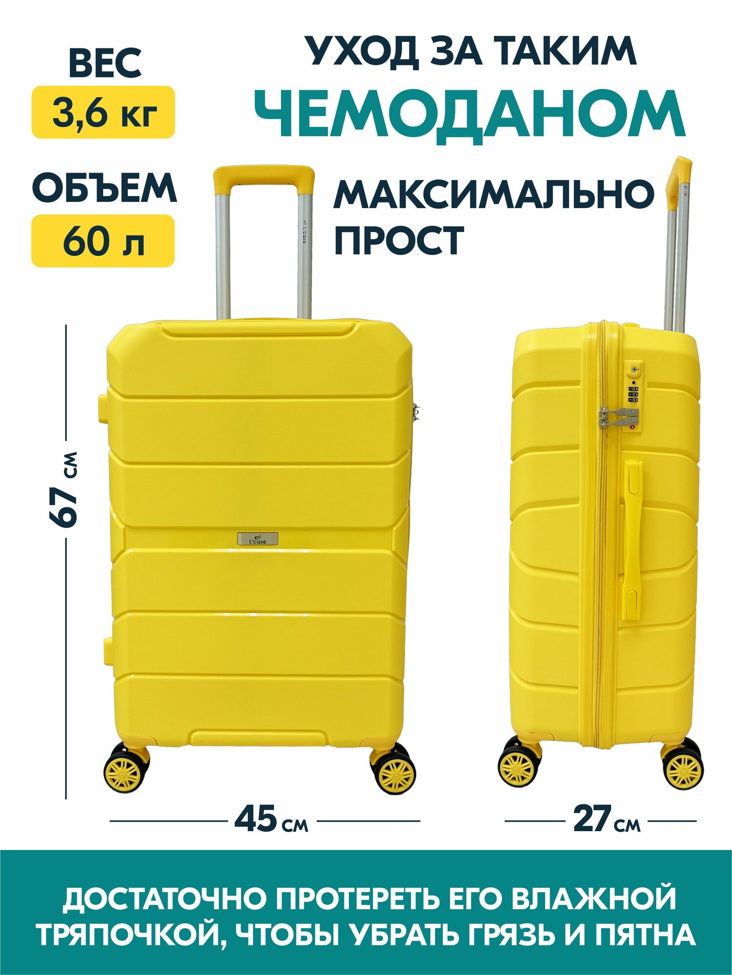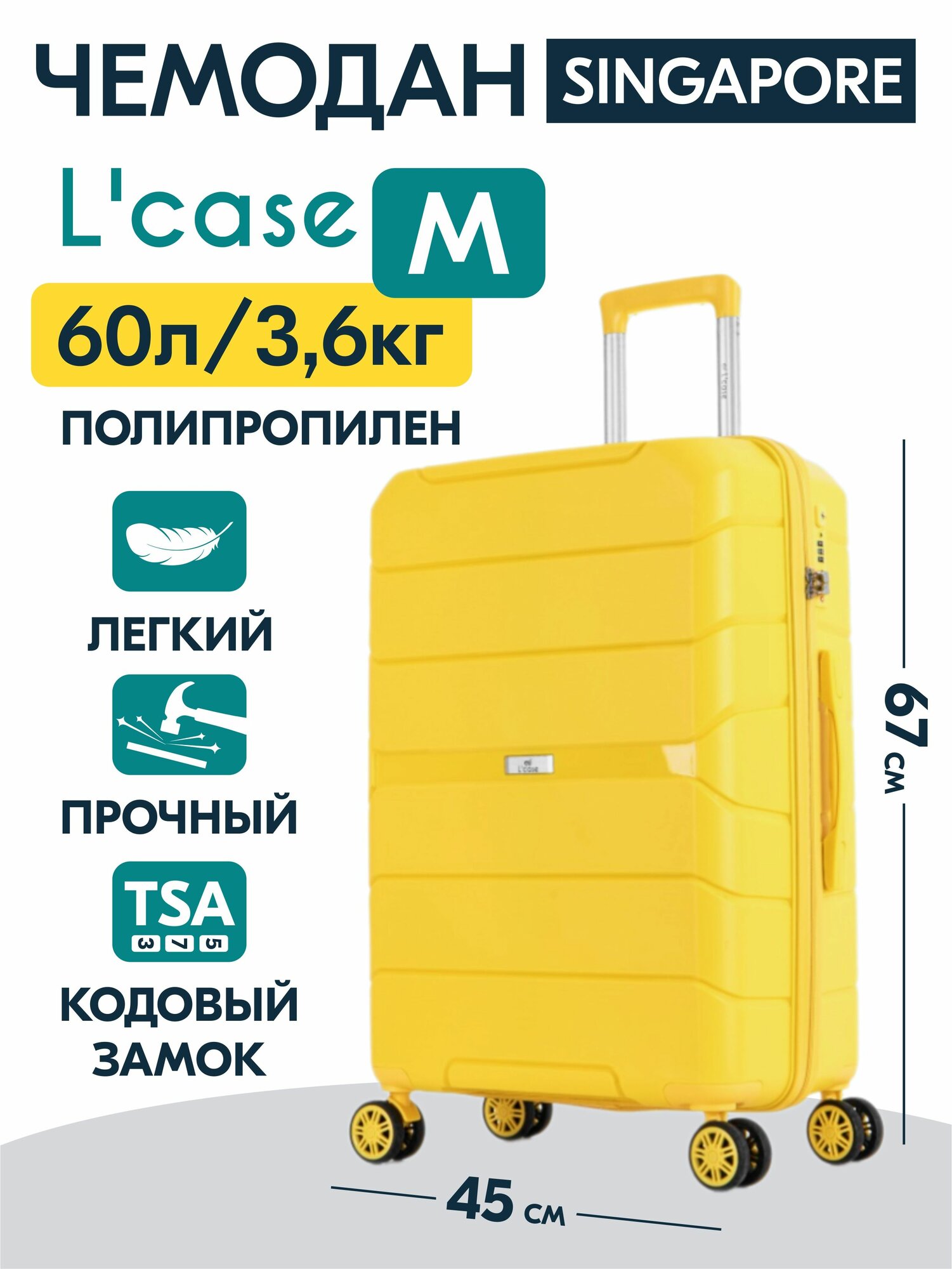 СохранитьЧемодан средний L'Case SINGAPORE (M) желтый, 67.5х45х27.5, арт:Ch0844 интересное: