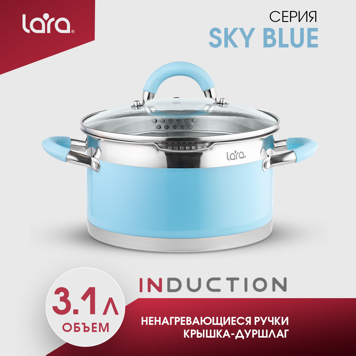 Кастрюля Lara Lr02-442 Sky Blue 11X20см, 3,1Л, Стал.ручки, Капсул Индук Дно, Слив Крышка LARA арт. LR02442