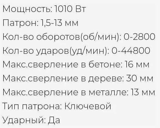 | Макс. количество ударов в минуту | 44800 уд/мин |