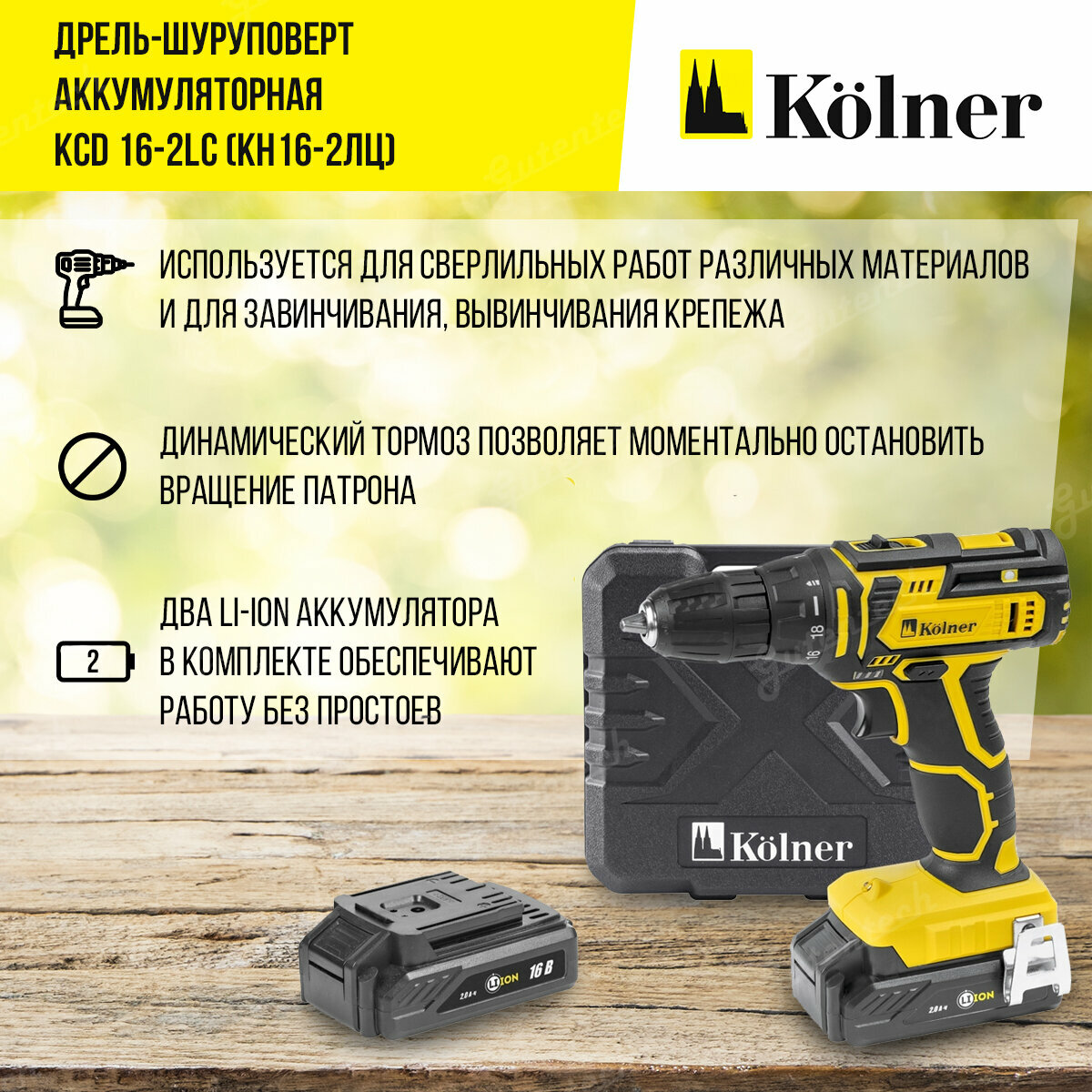 Дрель-шуруповерт аккумуляторная Kolner KCD 16-2LC