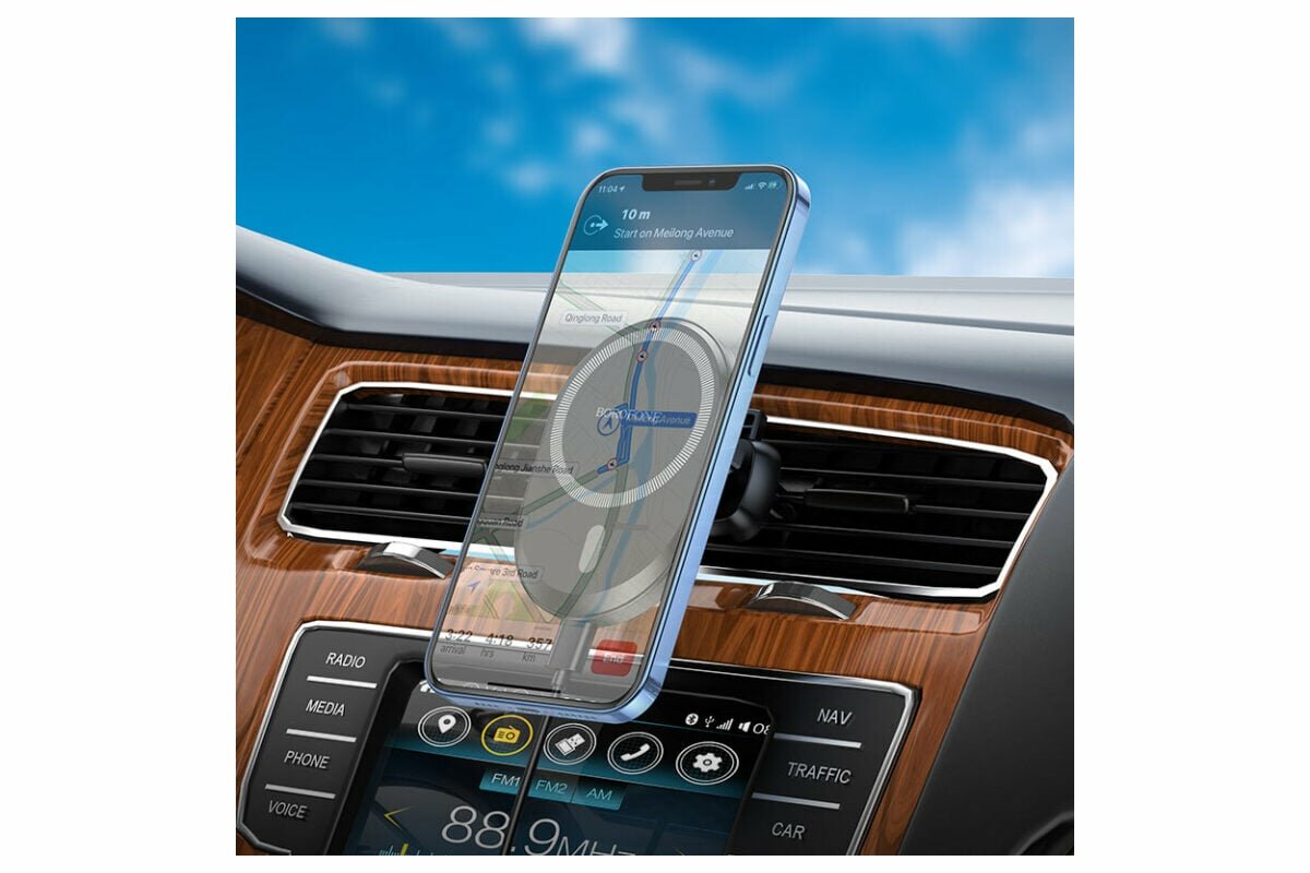 Автодержатель универсальный Borofone BH201, магнитный в воздуховод, беспроводная зарядка 15W, черный