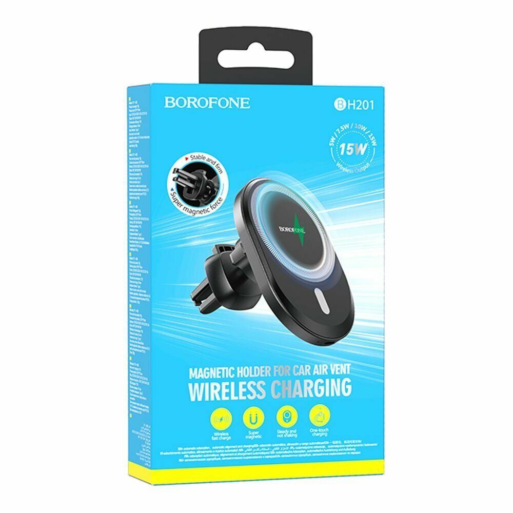 Держатель в авто с БЗУ BOROFONE BH201 Magnetic магнитный, в воздуховод, 15W (черный)