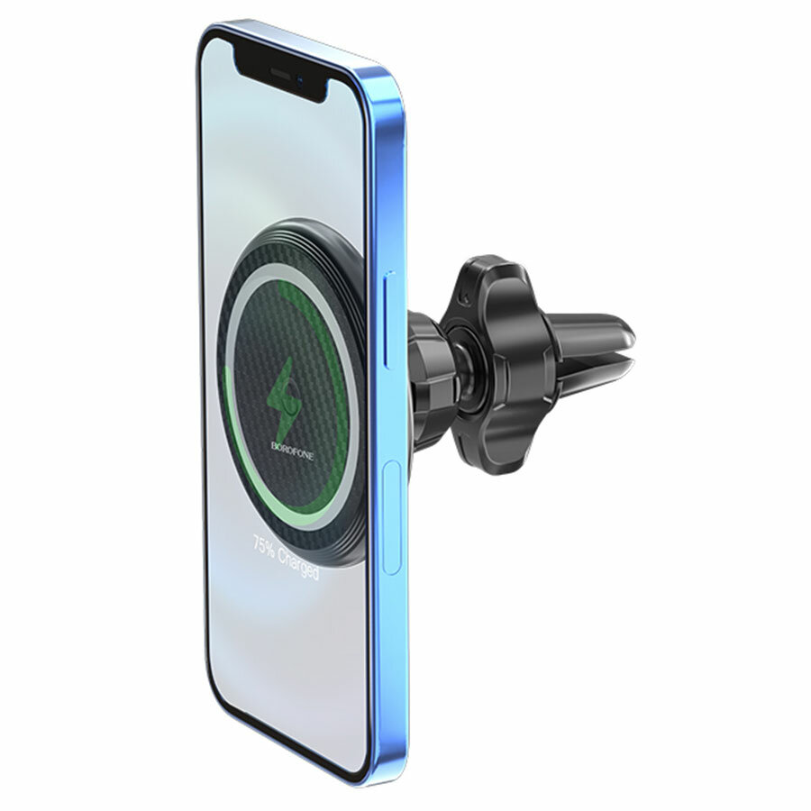 Держатель магнитный BOROFONE BH45 для iPhone 12/13/14 автомобильный, с беспроводной зарядкой в решетку воздуховода, черный
