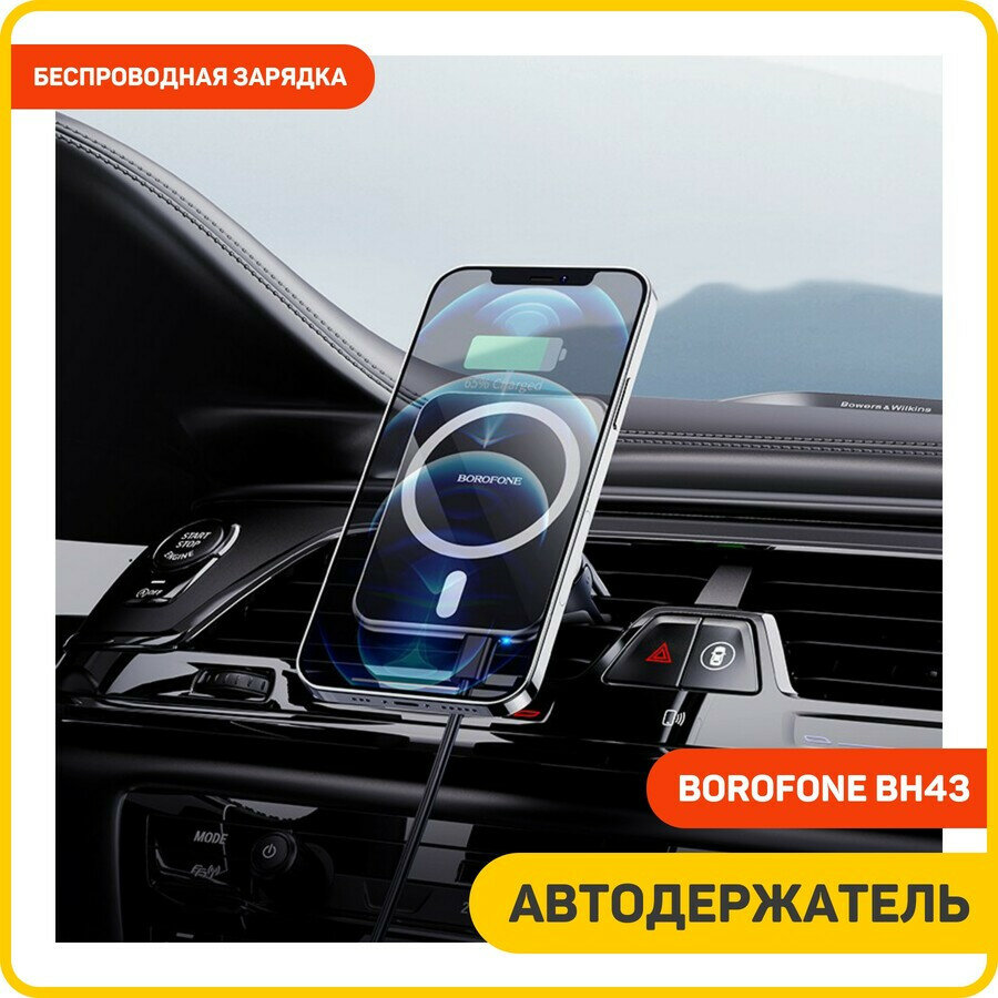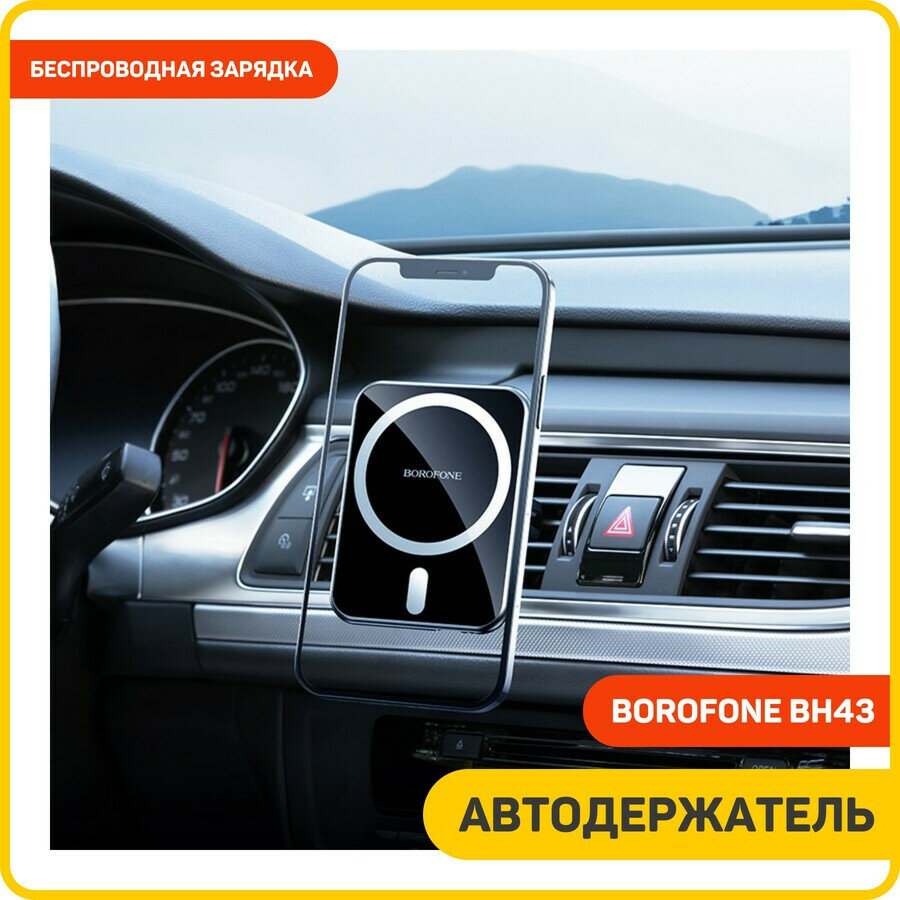 Держатель c беспроводной зарядкой в воздуховод Borofone BH43 (MagSafe) 15W магнитный черный